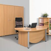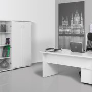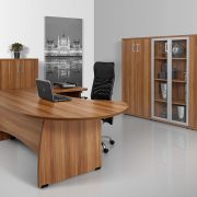 - Az úgynevezett “laplábas” kivitel masszív megjelenést kölcsönöz az íróasztaloknak, szimbolizálva az erőt, a stabilitást, amely magabiztossá teszi tulajdonosát.A lekerekített és ívelt asztalforma azonban lágyít a megjelenésen, így kedvelt berendezés a közép- és felsővezetők irodáiban. A vezetői irodák elengedhetetlen tartozéka – az asztal mellett – az elegáns szekrénysor, melynek számtalan formája létezik: ajtós, üvegajtós, nyitott polcos, tolóajtós…A lehetőségek széles tárházát kínáljuk, hogy Ön összeállíthassa modern irodáját.Színválaszték:antik cseresznye, cseresznye – fekete, bükk, bükk-fekete, világos szürke, cseresznye, cseresznye – fekete, olasz alma, olasz alma – fekete, juhar, favorit, samoa teak, szilva, érett tölgy.
